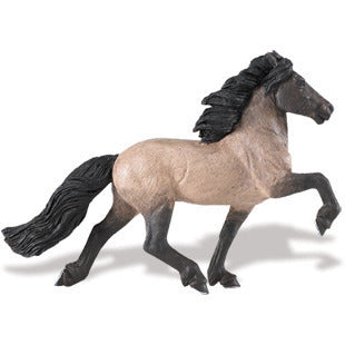 Ce bel étalon islandais est prêt pour des jeux amusants avec l'enfant.