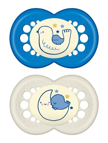 La meilleure sucette des sucettes Mam. Ces tétines sont dotées d'un bouton lumineux afin que l'enfant puisse facilement retrouver la tétine dans l'obscurité.