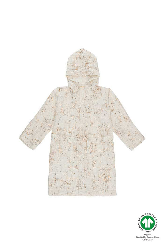 Ce peignoir super beau et ultra chic est de chez Soft Gallery. Il est composé à 100 % de coton biologique et présente un design ultra fin et élégant.