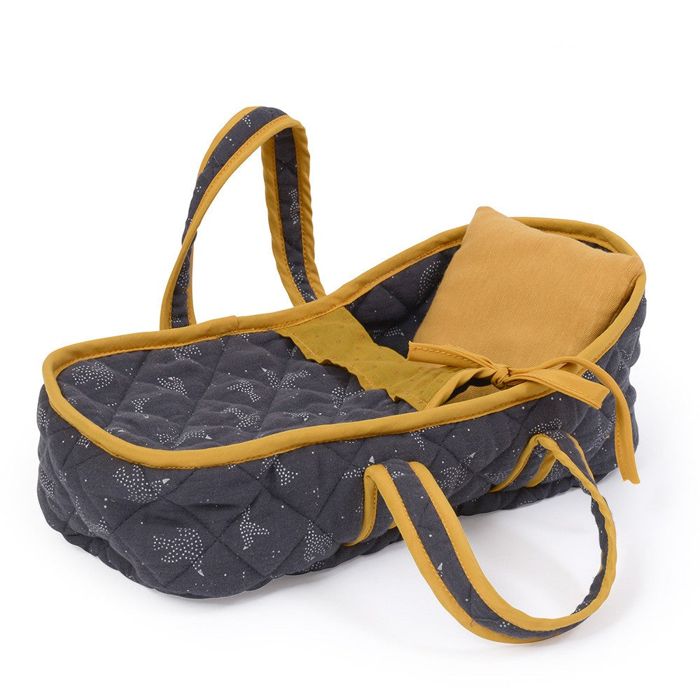 Un joli petit élévateur de poupée, parfait pour les petites poupées. Dock Lift est gris anthracite et fait de tissu matelassé, et il présente les plus beaux bords jaune moutarde. Dans la maison de poupée, il y a un oreiller assorti aux bords jaune moutarde. Le Dock Lift est doté d'une poignée de transport pour que votre enfant puisse transporter facilement sa poupée endormie.