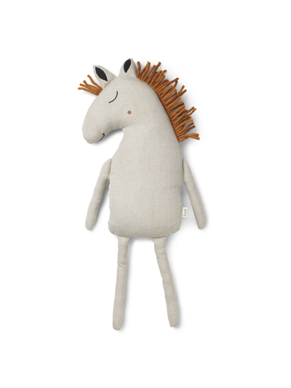 Ce beau cheval de Ferm Living peut être utilisé à la fois comme ours en peluche et comme oreiller décoratif.