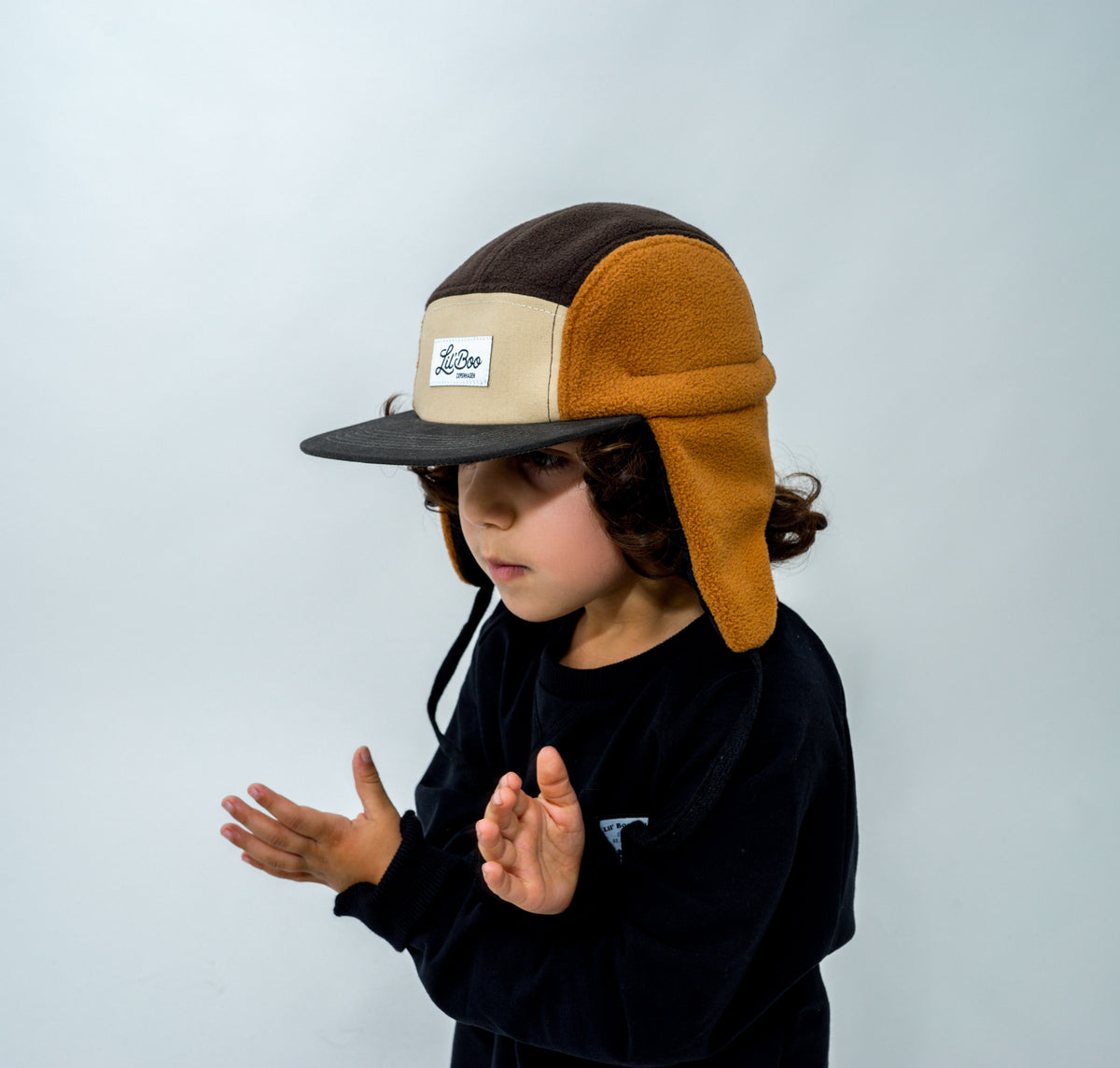 Casquettes, Block Fleece 5 panneaux avec oreille marron (taille L, 4-7 ans)