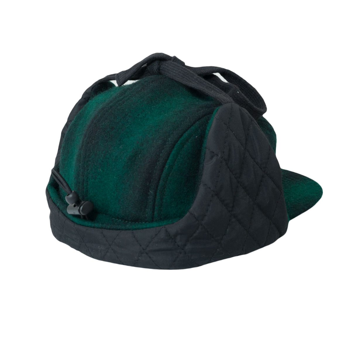 Bonnet en laine 5 panneaux avec oreille vert/noir (taille L, 4-7 ans)