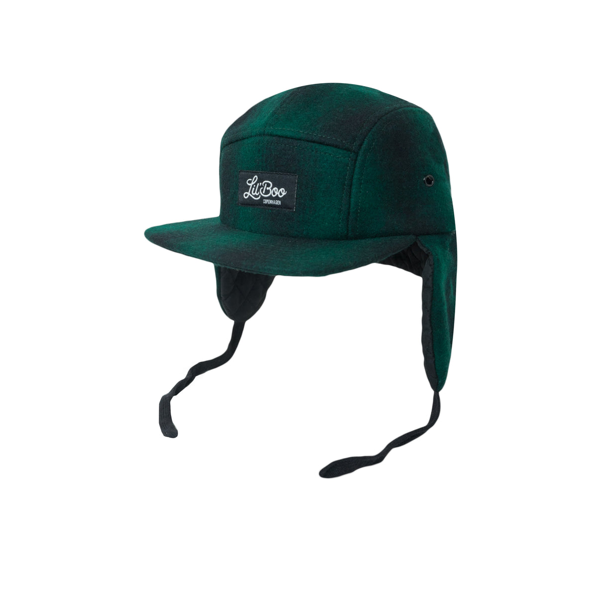 Casquette, laine 5 panneaux avec oreille vert/noir (taille M, 1,5-3 ans)