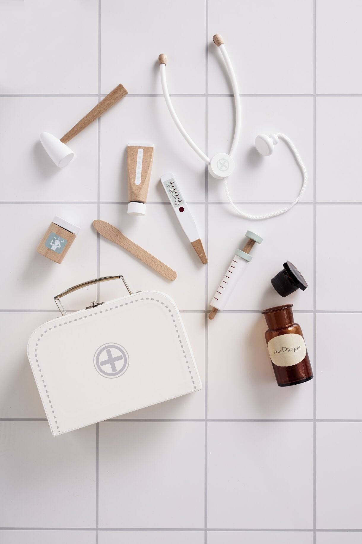 Ce kit médical provient de Kid's Concept, une marque que nous chez Little Happy sommes très fiers de pouvoir présenter. Il s'agit d'une marque suédoise qui fabrique des jouets pour une large tranche d'âge, afin que la plupart des enfants puissent jouer avec le Kid's Concept. Ce sac de jeu est un exemple parfait de la large tranche d’âge car plusieurs groupes d’âge l’apprécieront.