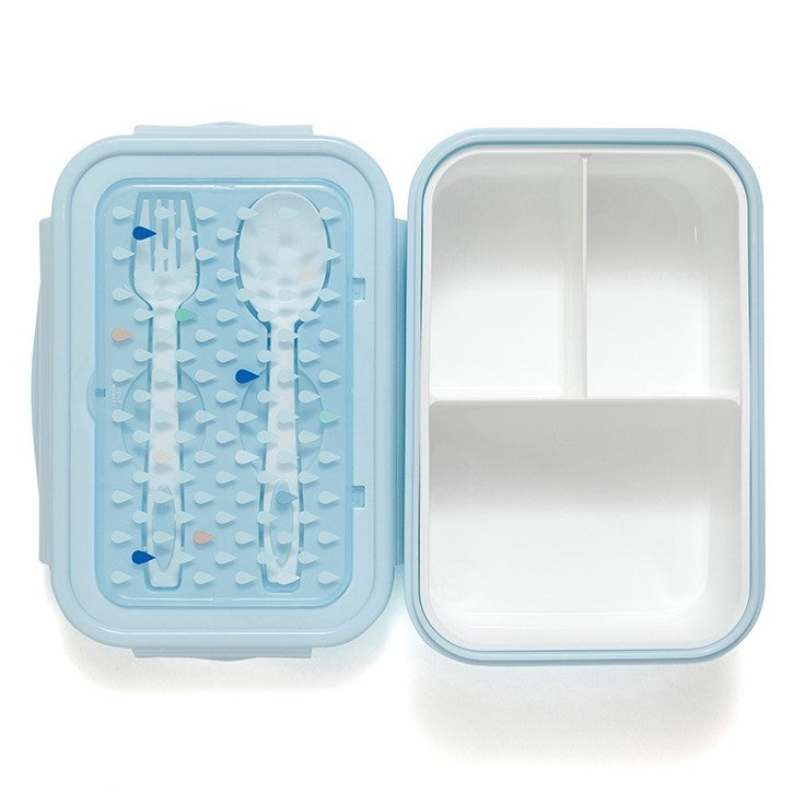 Magnifique boîte à lunch avec couverts de Petit Monkey, divisée en compartiments, tels que les collations au pain de seigle et les fruits peuvent être rangés séparément. Une cuillère et une fourchette incluses.