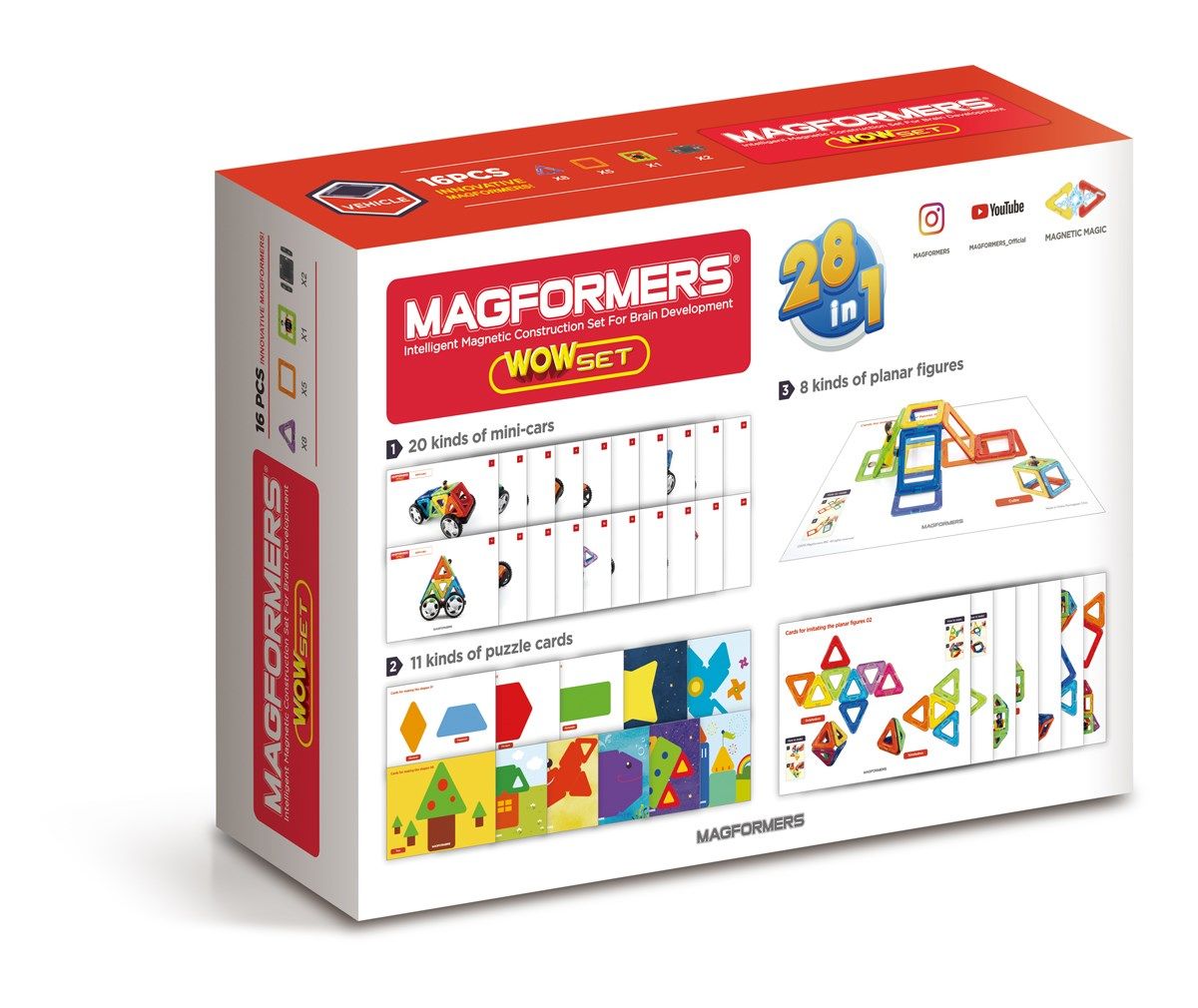 Forme gastrique sertie de pièces magnétiques des formes gastriques populaires. Construisez 28 véhicules différents à partir d'un seul kit.