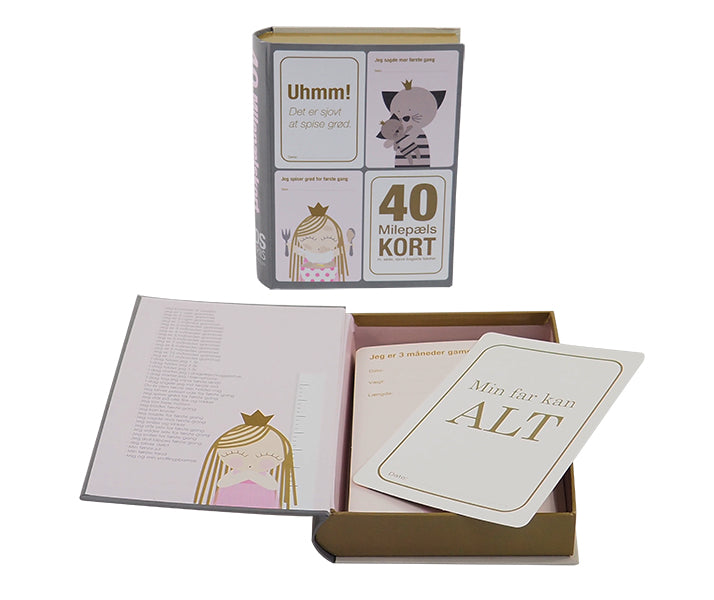 Vous recevez 40 cartes mesurant chacune 10 cm x 15 cm. Vous pouvez écrire au recto et au verso afin que tous les souvenirs importants puissent être sauvegardés. Les cartes sont faites de carton solide, elles sont donc très durables et ne s'effondreront pas au fil des années. De plus, les cartes sont livrées dans une jolie boîte avec une fermeture magnétique, afin que vous puissiez être sûr qu'elles ne tombent pas.