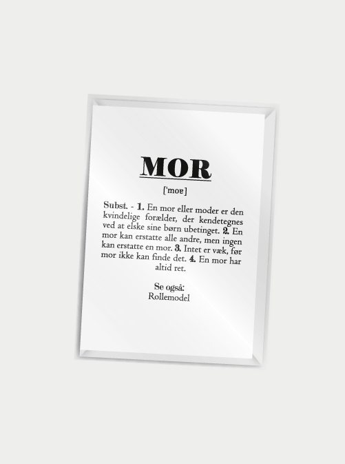 L'affiche Modera entre guillemets a été développée dans un design simple avec un souci du détail et l'affiche s'adapte donc à la plupart des maisons modernes. Citatplakater est une entreprise danoise qui existe depuis 2015. Citatplakater a été créée pour ajouter un peu de couleur et d'humour à un quotidien parfois ennuyeux. Avec le poster de citation de maman, vous pouvez vous assurer que votre mère ressent de l'amour et de la chaleur au quotidien, tout en ayant le sourire aux lèvres lorsqu'elle lit le texte sur le poster.