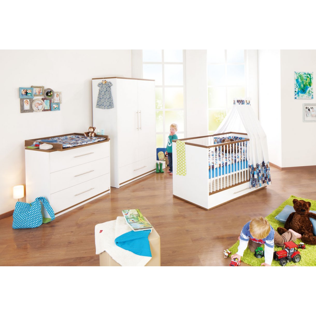 Décoration : noyer avec structure en bois véritable et blanc uni