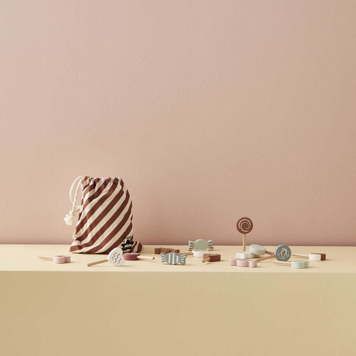 Super bel ensemble avec toutes sortes de bonbons de la collection Bistro Kid's Concepts. Toutes les boules anti-puces sont en bois et un sac de rangement est inclus. L'ensemble est parfait pour que votre enfant crée sa propre petite boutique à la maison ou pour la cuisine ludique. De plus, il se marie parfaitement avec d'autres jouets de la collection Kid's Concepts Bistro.