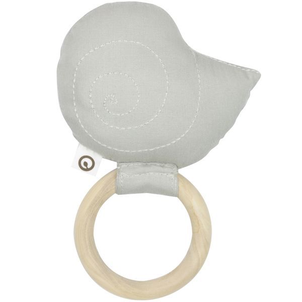 Hochets élégants de MUESLI avec un petit escargot sur le dessus dans une jolie couleur vert poussiéreux. Bonne distraction pour bébé lorsque les choses ont besoin de se détendre à nouveau.
