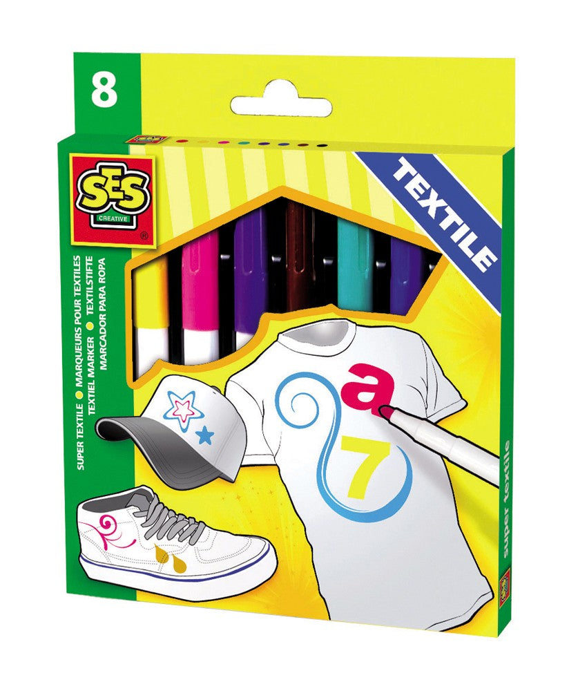 Concevez votre propre t-shirt, casquette, chapeau ou autre avec ces marqueurs textiles intelligents de SES Creative. Une façon amusante pour l'enfant d'être créatif.